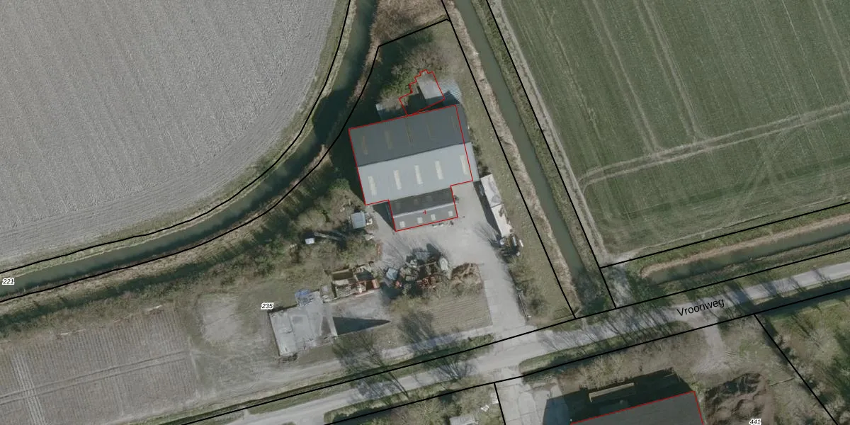 Het perceel waarop Vroonweg 4 staat heeft een oppervlakte van 8640 m². Dit is een zeer groot perceel. De perceeloppervlakte wordt geregistreerd door het Kadaster. Gedetailleerde informatie over de maten van dit perceel kunt u vinden in het rapport Kadastrale kaart met maatvoering van Vroonweg 4.