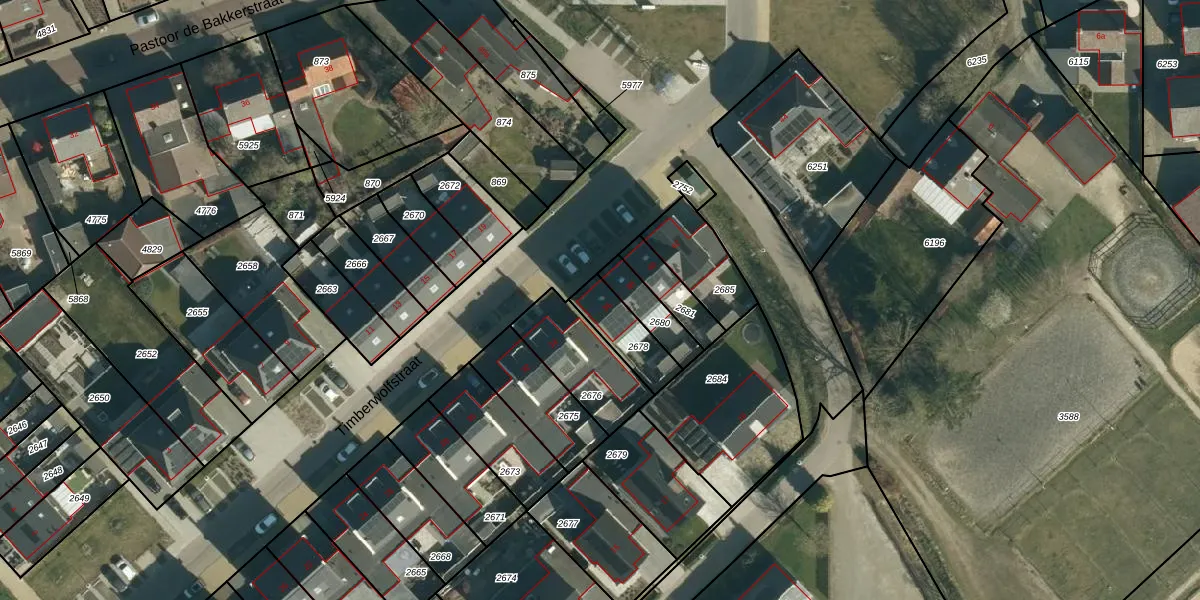 Timberwolfstraat 36 is gelegen op kadastraal perceel ZDT02T2678. Deze kadastrale aanduiding is uniek en wordt gebruikt door het Kadaster om eigendomsrechten en andere zakelijke rechten vast te leggen. Het perceel maakt onderdeel uit van de kadastrale gemeente Zundert.