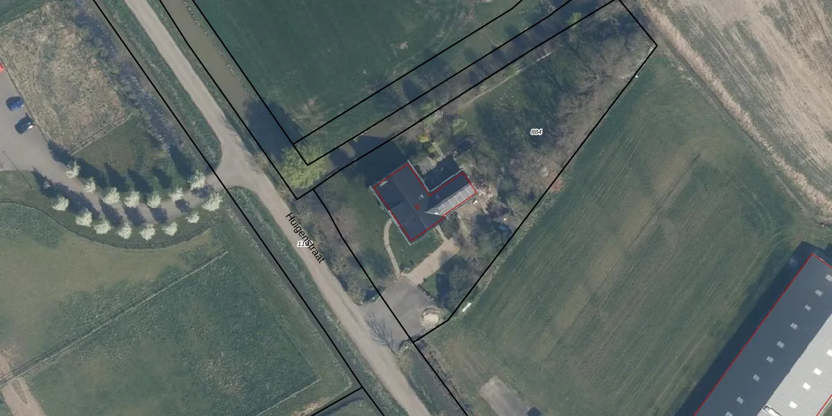 Het perceel waarop Huigenstraat 32 staat heeft een oppervlakte van 2755 m². Dit is een zeer groot perceel. De perceeloppervlakte wordt geregistreerd door het Kadaster. Gedetailleerde informatie over de maten van dit perceel kunt u vinden in het rapport Kadastrale kaart met maatvoering van Huigenstraat 32.