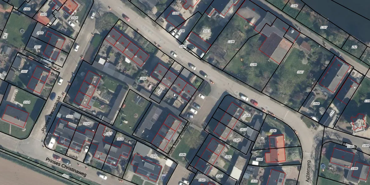 Het perceel waarop Prinses Beatrixstraat 38 staat heeft een oppervlakte van 2480 m². Dit is een zeer groot perceel. De perceeloppervlakte wordt geregistreerd door het Kadaster. Gedetailleerde informatie over de maten van dit perceel kunt u vinden in het rapport Kadastrale kaart met maatvoering van Prinses Beatrixstraat 38.