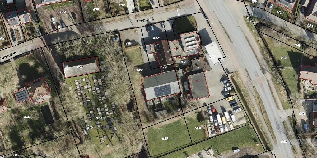 Torenweg 2-B is gelegen op kadastraal perceel ADP00C2208. Deze kadastrale aanduiding is uniek en wordt gebruikt door het Kadaster om eigendomsrechten en andere zakelijke rechten vast te leggen. Het perceel maakt onderdeel uit van de kadastrale gemeente Adorp.