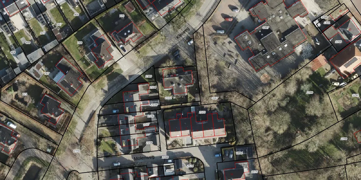 Het perceel waarop Kleiweg 13 staat heeft een oppervlakte van 473 m². Dit is een groot perceel. De perceeloppervlakte wordt geregistreerd door het Kadaster. Gedetailleerde informatie over de maten van dit perceel kunt u vinden in het rapport Kadastrale kaart met maatvoering van Kleiweg 13.