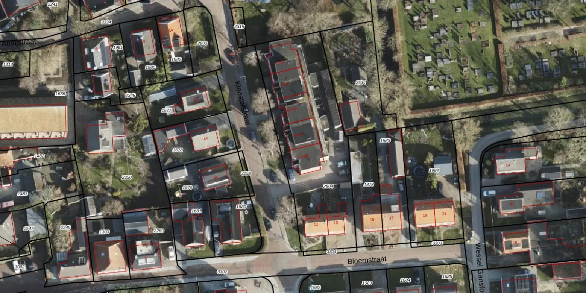 Het perceel waarop Kloosterstraat 51 staat heeft een oppervlakte van 1595 m². Dit is een zeer groot perceel. De perceeloppervlakte wordt geregistreerd door het Kadaster. Gedetailleerde informatie over de maten van dit perceel kunt u vinden in het rapport Kadastrale kaart met maatvoering van Kloosterstraat 51.