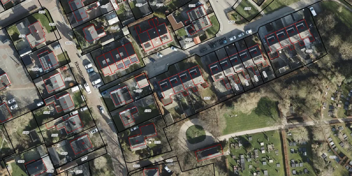 Het perceel waarop Vijverweg 39 staat heeft een oppervlakte van 1253 m². Dit is een zeer groot perceel. De perceeloppervlakte wordt geregistreerd door het Kadaster. Gedetailleerde informatie over de maten van dit perceel kunt u vinden in het rapport Kadastrale kaart met maatvoering van Vijverweg 39.