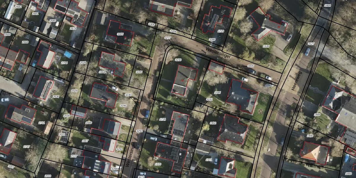 Het perceel waarop Westersingel 28 staat heeft een oppervlakte van 690 m². Dit is een groot perceel. De perceeloppervlakte wordt geregistreerd door het Kadaster. Gedetailleerde informatie over de maten van dit perceel kunt u vinden in het rapport Kadastrale kaart met maatvoering van Westersingel 28.