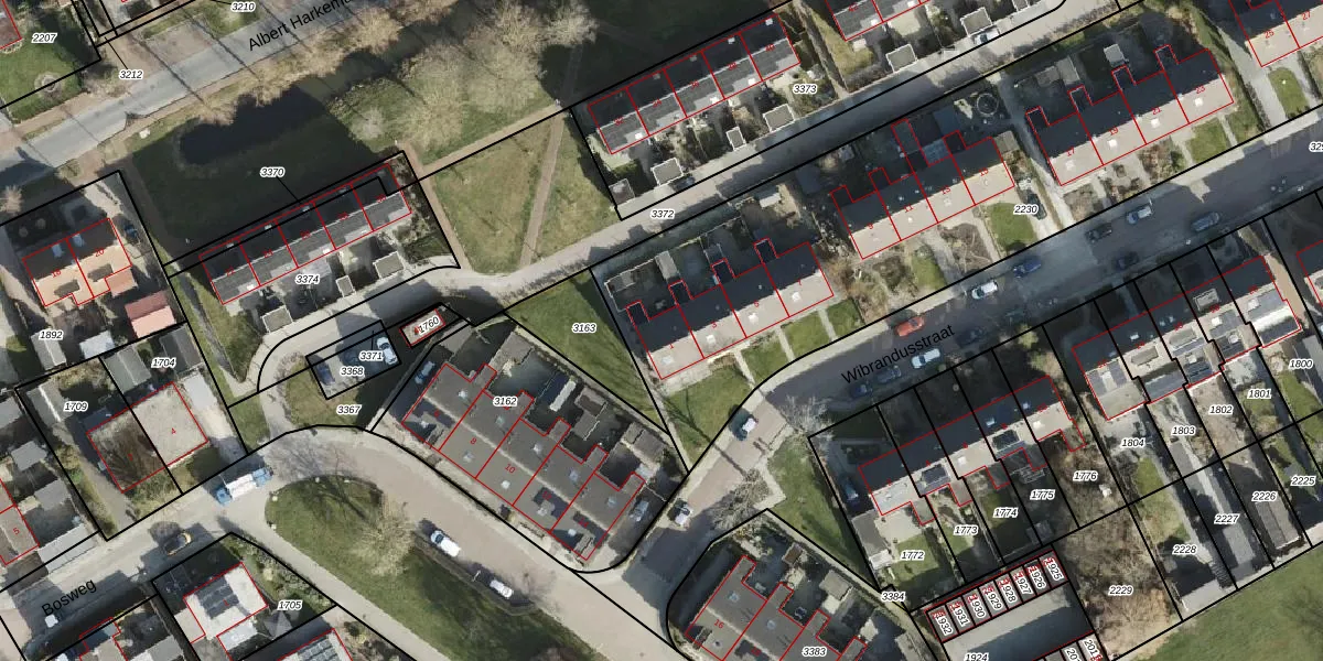 Het perceel waarop Wibrandusstraat 1 staat heeft een oppervlakte van 4449 m². Dit is een zeer groot perceel. De perceeloppervlakte wordt geregistreerd door het Kadaster. Gedetailleerde informatie over de maten van dit perceel kunt u vinden in het rapport Kadastrale kaart met maatvoering van Wibrandusstraat 1.