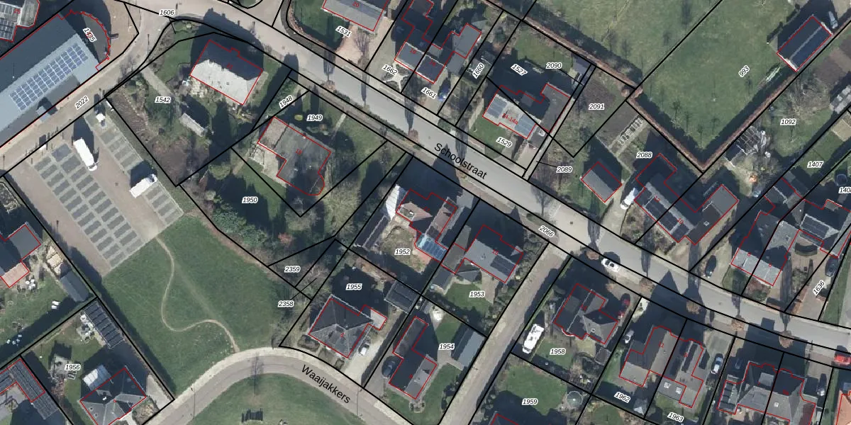 Het perceel waarop Schoolstraat 17 staat heeft een oppervlakte van 515 m². Dit is een groot perceel. De perceeloppervlakte wordt geregistreerd door het Kadaster. Gedetailleerde informatie over de maten van dit perceel kunt u vinden in het rapport Kadastrale kaart met maatvoering van Schoolstraat 17.