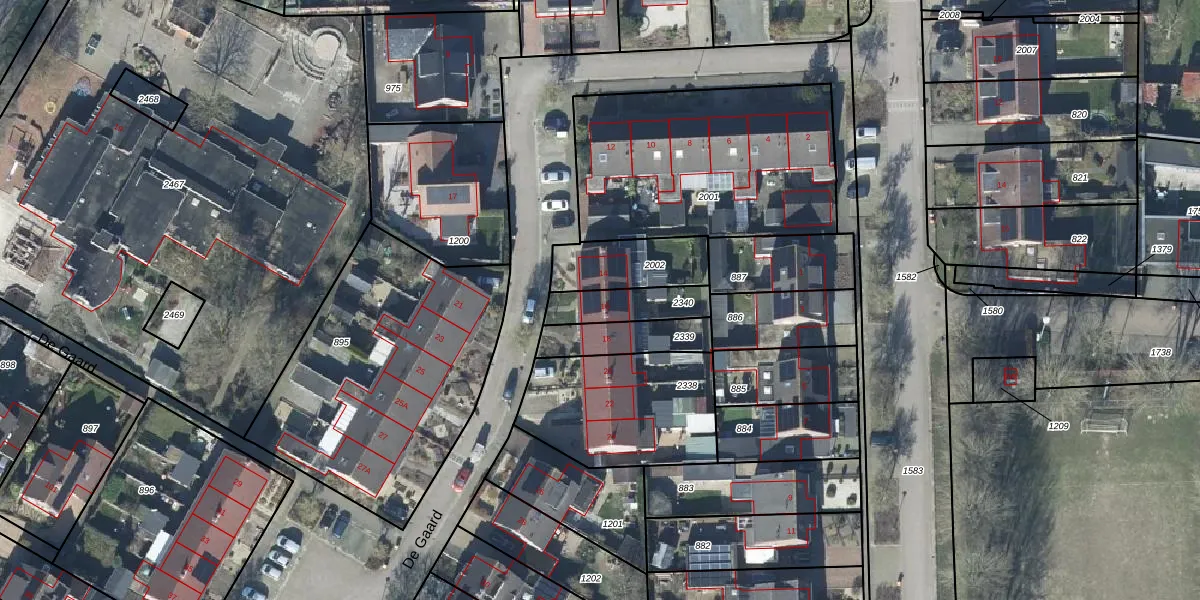 De Gaard 16 is gelegen op kadastraal perceel DTN03D2340. Deze kadastrale aanduiding is uniek en wordt gebruikt door het Kadaster om eigendomsrechten en andere zakelijke rechten vast te leggen. Het perceel maakt onderdeel uit van de kadastrale gemeente Druten.