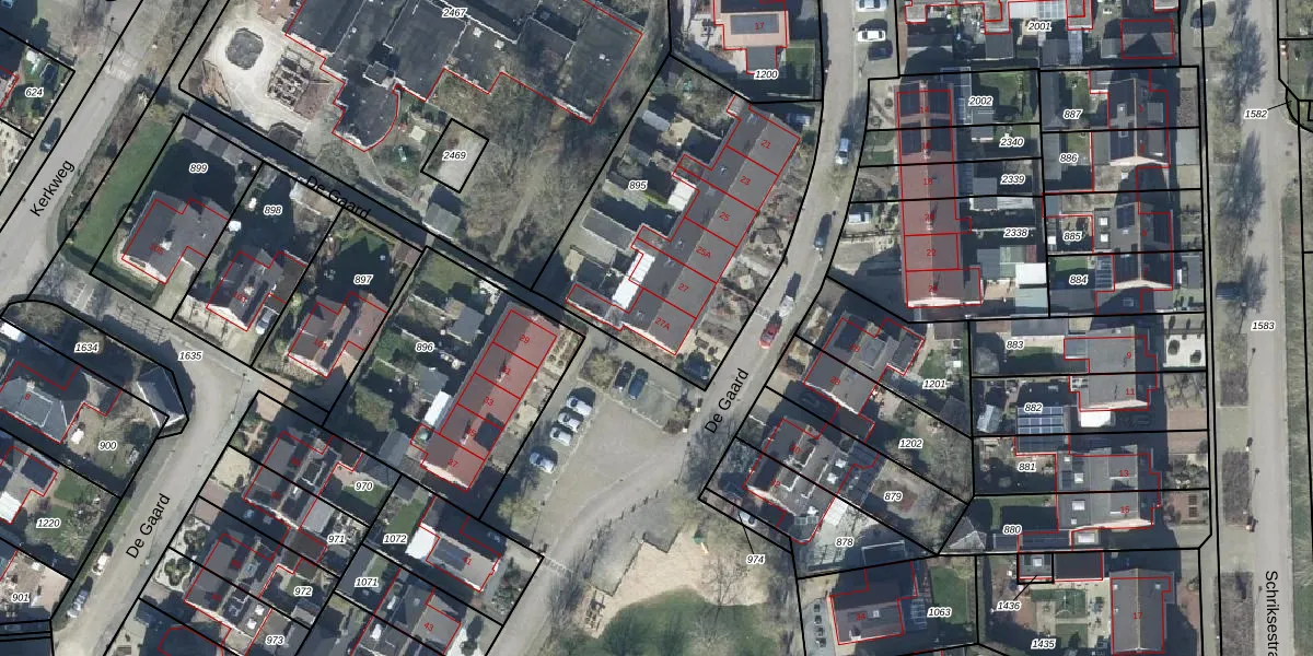 De Gaard 27-A is gelegen op kadastraal perceel DTN03D895. Deze kadastrale aanduiding is uniek en wordt gebruikt door het Kadaster om eigendomsrechten en andere zakelijke rechten vast te leggen. Het perceel maakt onderdeel uit van de kadastrale gemeente Druten.
