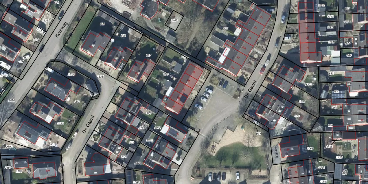 Het perceel waarop De Gaard 33 staat heeft een oppervlakte van 905 m². Dit is een groot perceel. De perceeloppervlakte wordt geregistreerd door het Kadaster. Gedetailleerde informatie over de maten van dit perceel kunt u vinden in het rapport Kadastrale kaart met maatvoering van De Gaard 33.
