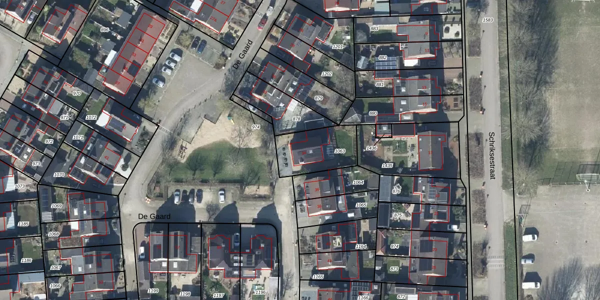 Het perceel waarop De Gaard 34 staat heeft een oppervlakte van 369 m². Dit is een groot perceel. De perceeloppervlakte wordt geregistreerd door het Kadaster. Gedetailleerde informatie over de maten van dit perceel kunt u vinden in het rapport Kadastrale kaart met maatvoering van De Gaard 34.