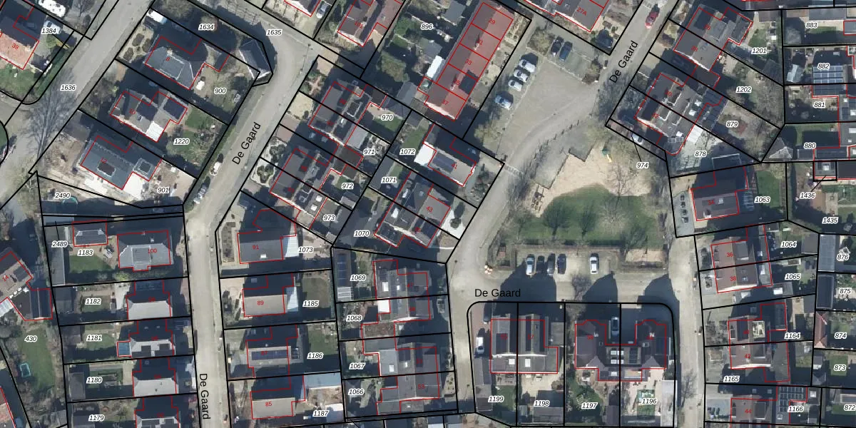 De Gaard 43 is gelegen op kadastraal perceel DTN03D1071. Deze kadastrale aanduiding is uniek en wordt gebruikt door het Kadaster om eigendomsrechten en andere zakelijke rechten vast te leggen. Het perceel maakt onderdeel uit van de kadastrale gemeente Druten.