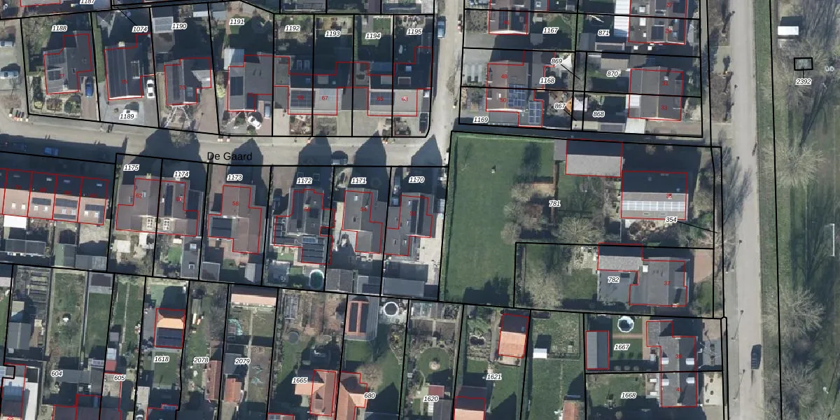 Het perceel waarop De Gaard 52 staat heeft een oppervlakte van 433 m². Dit is een groot perceel. De perceeloppervlakte wordt geregistreerd door het Kadaster. Gedetailleerde informatie over de maten van dit perceel kunt u vinden in het rapport Kadastrale kaart met maatvoering van De Gaard 52.