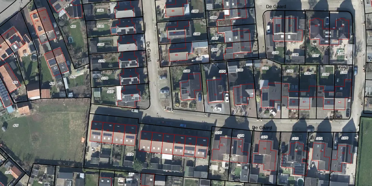 Het perceel waarop De Gaard 77 staat heeft een oppervlakte van 412 m². Dit is een groot perceel. De perceeloppervlakte wordt geregistreerd door het Kadaster. Gedetailleerde informatie over de maten van dit perceel kunt u vinden in het rapport Kadastrale kaart met maatvoering van De Gaard 77.