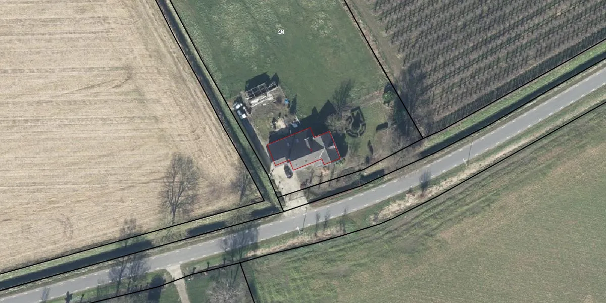 Het adres ligt op het perceel DTN03-E-43, dat zich in de kadastrale gemeente Druten bevindt. De gemiddelde perceeloppervlakte in de kadastrale gemeente Druten is 2952,42 m². Dit perceel is met zijn 5950 m² dus groter dan gemiddeld. De grootste perceeloppervlakte in de kadastrale gemeente is 80,8 ha. De kleinste oppervlakte bedraagt 0 m². Er zijn geen andere adressen aanwezig op het perceel. In de Basisregistratie Kadaster (BRK) werden de grenzen van het perceel geregistreerd op 12-06-2001.