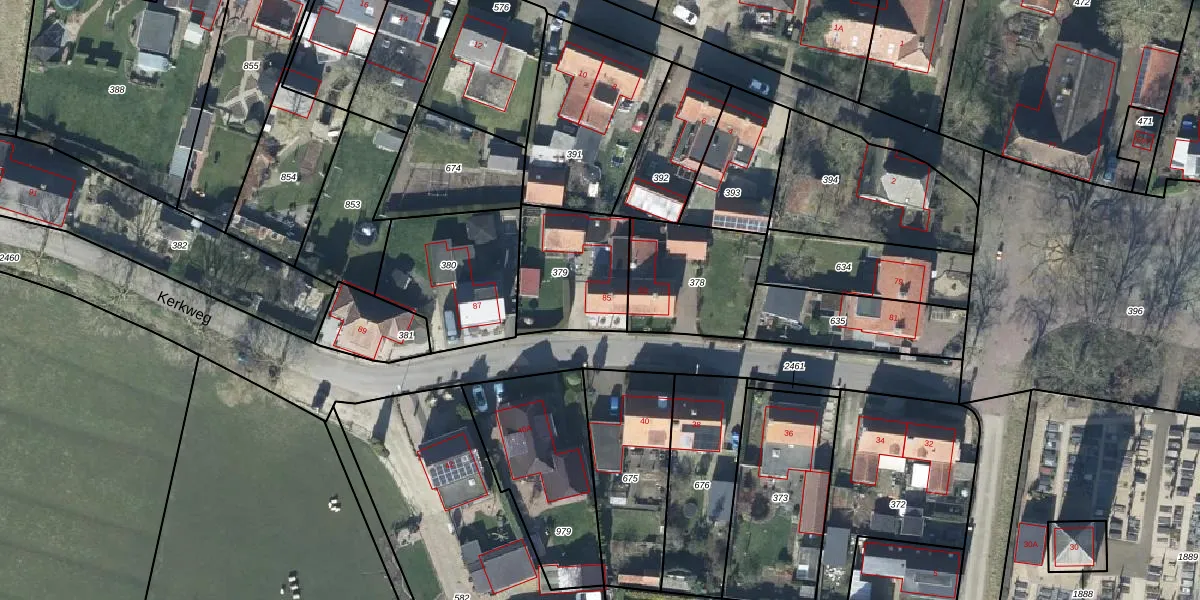 Het perceel waarop Kerkweg 85 staat heeft een oppervlakte van 375 m². Dit is een groot perceel. De perceeloppervlakte wordt geregistreerd door het Kadaster. Gedetailleerde informatie over de maten van dit perceel kunt u vinden in het rapport Kadastrale kaart met maatvoering van Kerkweg 85.