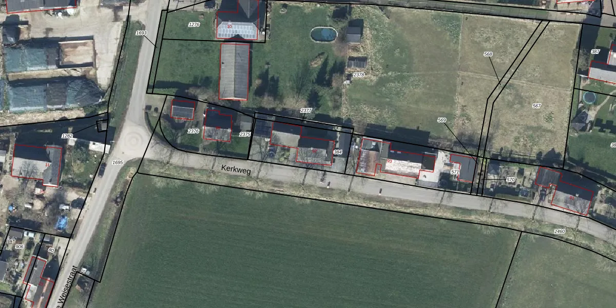 Kerkweg 97 is gelegen op kadastraal perceel DTN03D384. Deze kadastrale aanduiding is uniek en wordt gebruikt door het Kadaster om eigendomsrechten en andere zakelijke rechten vast te leggen. Het perceel maakt onderdeel uit van de kadastrale gemeente Druten.