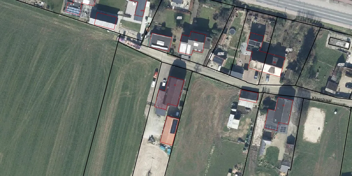 Het perceel waarop Klapstraat 12 staat heeft een oppervlakte van 3150 m². Dit is een zeer groot perceel. De perceeloppervlakte wordt geregistreerd door het Kadaster. Gedetailleerde informatie over de maten van dit perceel kunt u vinden in het rapport Kadastrale kaart met maatvoering van Klapstraat 12.