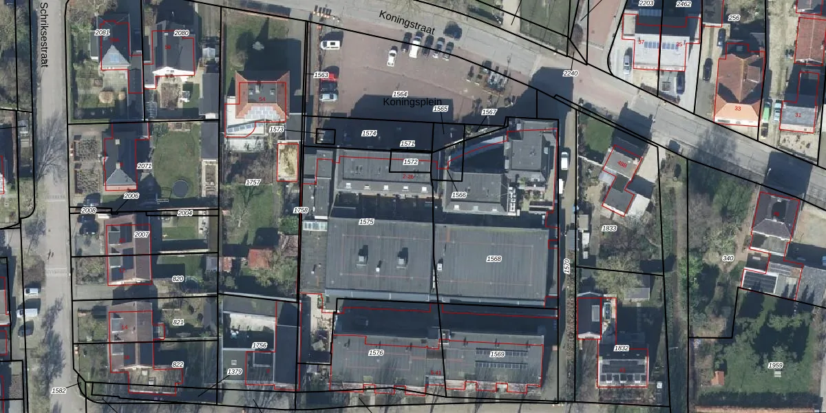 Het perceel waarop Koningsplein 16 staat heeft een oppervlakte van 1263 m². Dit is een zeer groot perceel. De perceeloppervlakte wordt geregistreerd door het Kadaster. Gedetailleerde informatie over de maten van dit perceel kunt u vinden in het rapport Kadastrale kaart met maatvoering van Koningsplein 16.