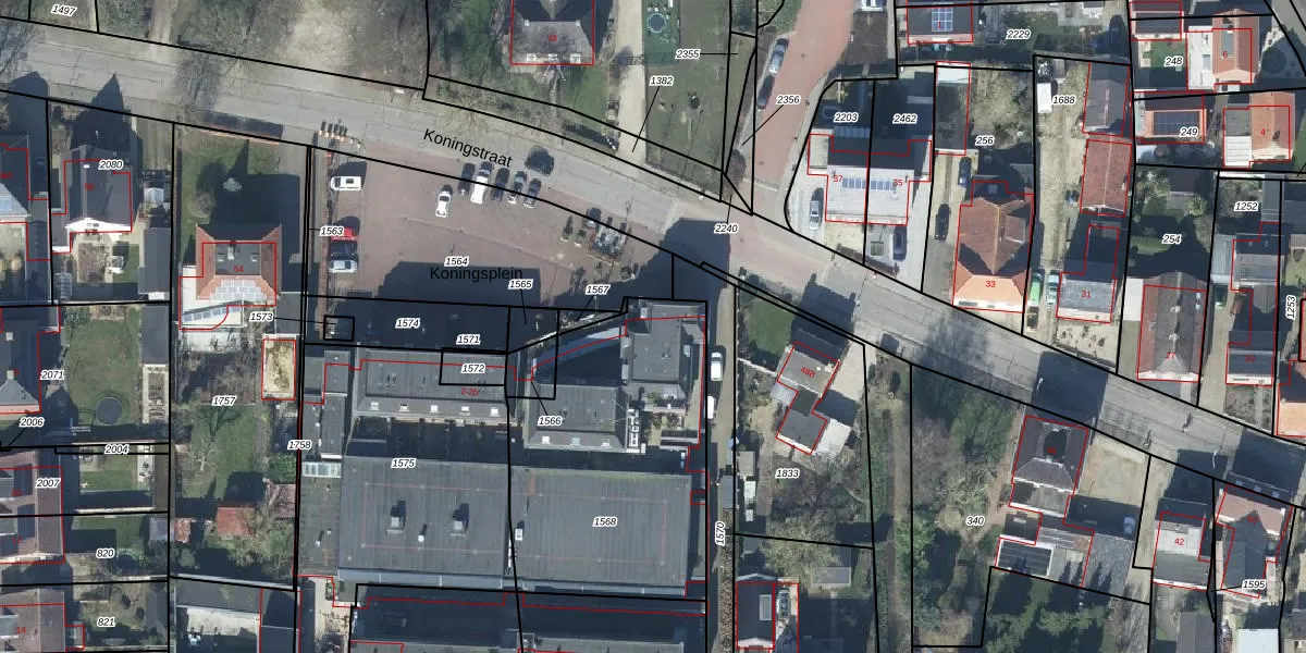 Het perceel waarop Koningsplein 26 staat heeft een oppervlakte van 1225 m². Dit is een zeer groot perceel. De perceeloppervlakte wordt geregistreerd door het Kadaster. Gedetailleerde informatie over de maten van dit perceel kunt u vinden in het rapport Kadastrale kaart met maatvoering van Koningsplein 26.
