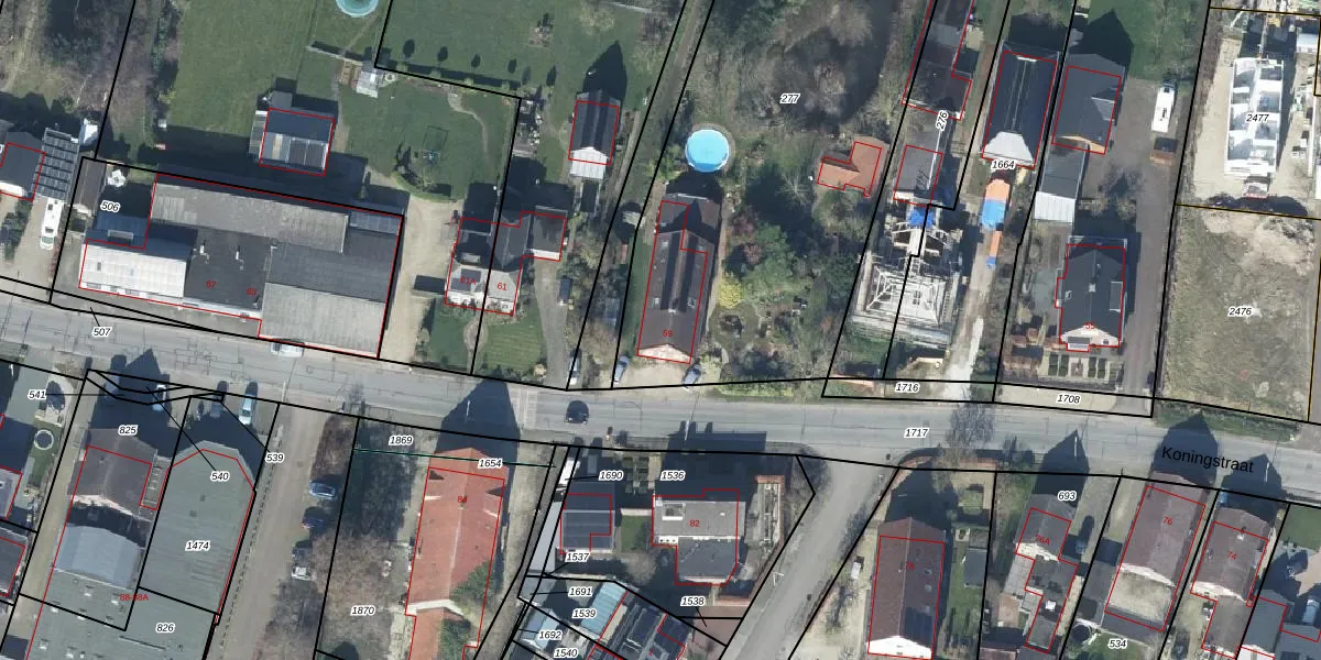 Het perceel waarop Koningstraat 59 staat heeft een oppervlakte van 3150 m². Dit is een zeer groot perceel. De perceeloppervlakte wordt geregistreerd door het Kadaster. Gedetailleerde informatie over de maten van dit perceel kunt u vinden in het rapport Kadastrale kaart met maatvoering van Koningstraat 59.
