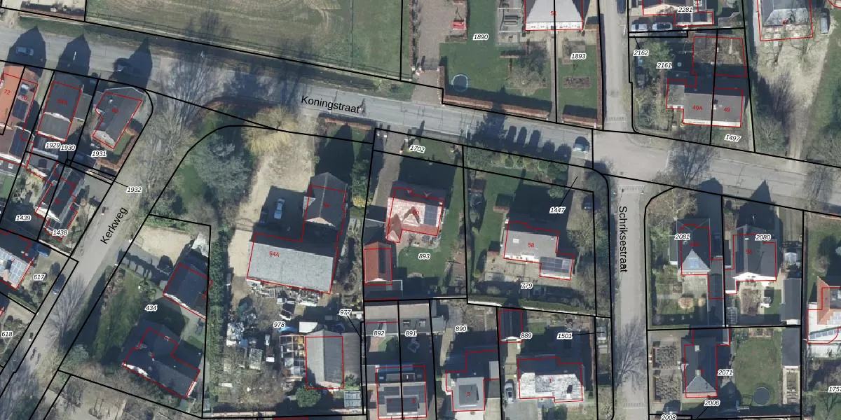 Het perceel waarop Koningstraat 60 staat heeft een oppervlakte van 800 m². Dit is een groot perceel. De perceeloppervlakte wordt geregistreerd door het Kadaster. Gedetailleerde informatie over de maten van dit perceel kunt u vinden in het rapport Kadastrale kaart met maatvoering van Koningstraat 60.