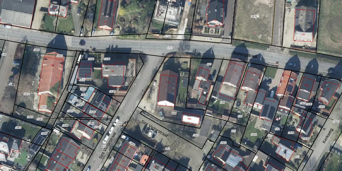 Het perceel waarop Koningstraat 78 staat heeft een oppervlakte van 930 m². Dit is een groot perceel. De perceeloppervlakte wordt geregistreerd door het Kadaster. Gedetailleerde informatie over de maten van dit perceel kunt u vinden in het rapport Kadastrale kaart met maatvoering van Koningstraat 78.