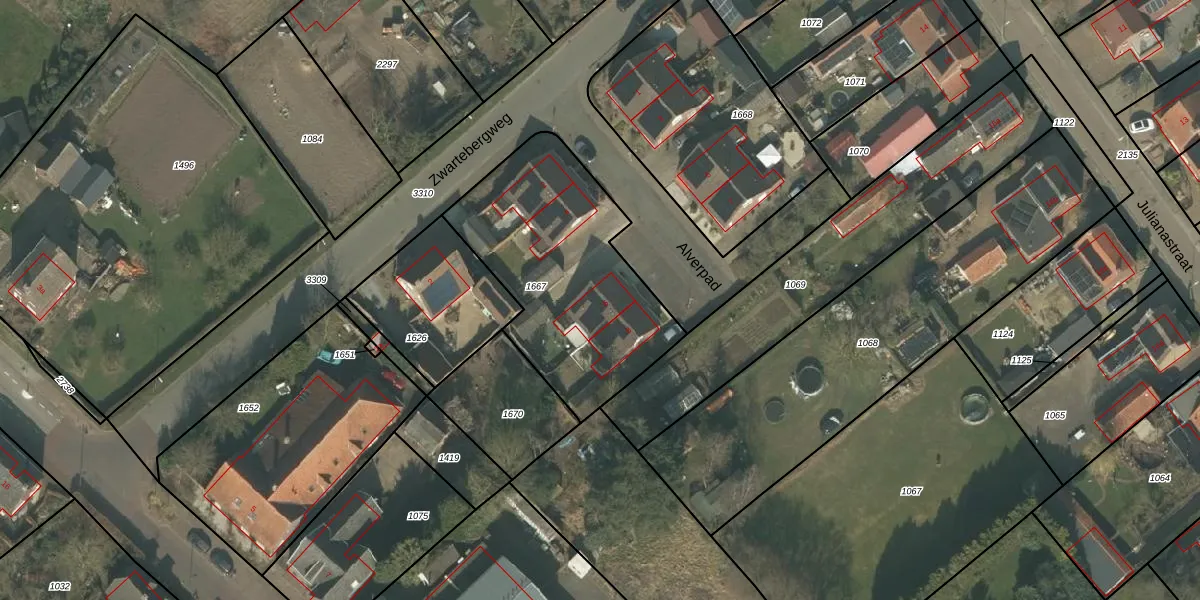 Alverpad 6 is gelegen op kadastraal perceel BGN02T1667. Deze kadastrale aanduiding is uniek en wordt gebruikt door het Kadaster om eigendomsrechten en andere zakelijke rechten vast te leggen. Het perceel maakt onderdeel uit van de kadastrale gemeente Bergen Limburg.