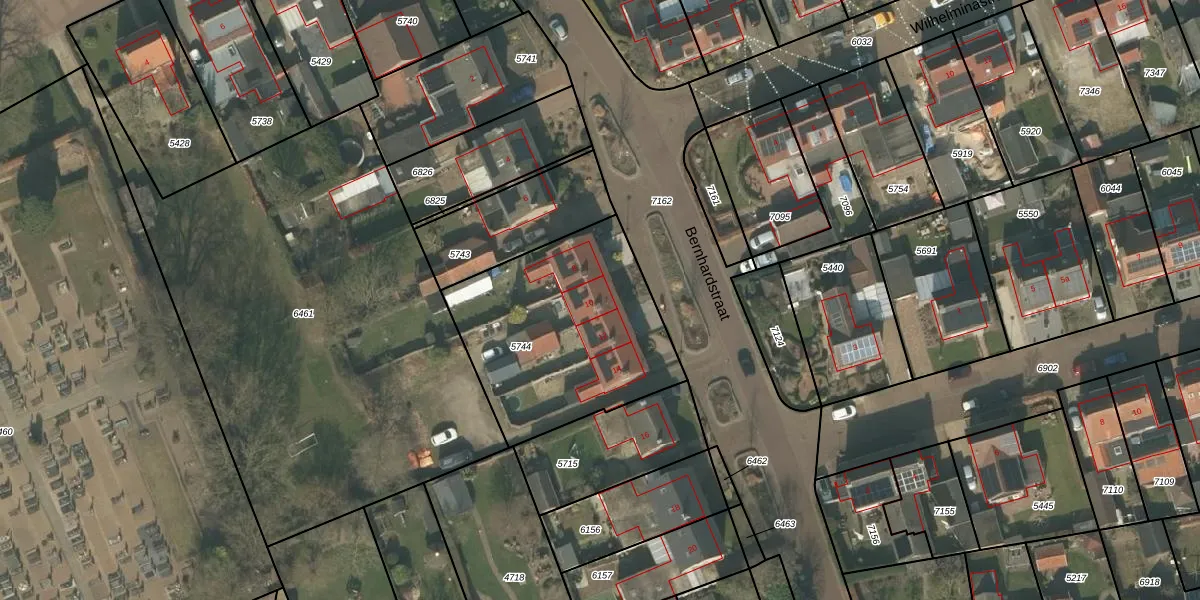 Bernhardstraat 10 is gelegen op kadastraal perceel BGN02C5744. Deze kadastrale aanduiding is uniek en wordt gebruikt door het Kadaster om eigendomsrechten en andere zakelijke rechten vast te leggen. Het perceel maakt onderdeel uit van de kadastrale gemeente Bergen Limburg.