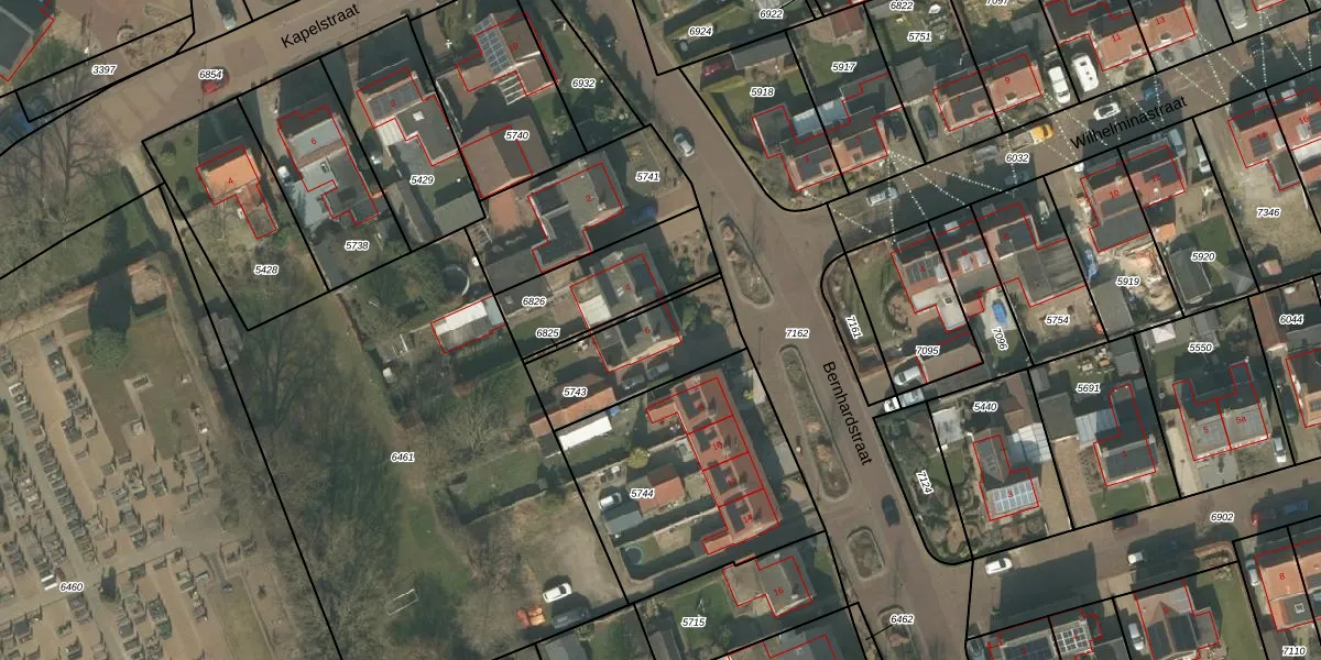 Bernhardstraat 6 is gelegen op kadastraal perceel BGN02C5743. Deze kadastrale aanduiding is uniek en wordt gebruikt door het Kadaster om eigendomsrechten en andere zakelijke rechten vast te leggen. Het perceel maakt onderdeel uit van de kadastrale gemeente Bergen Limburg.