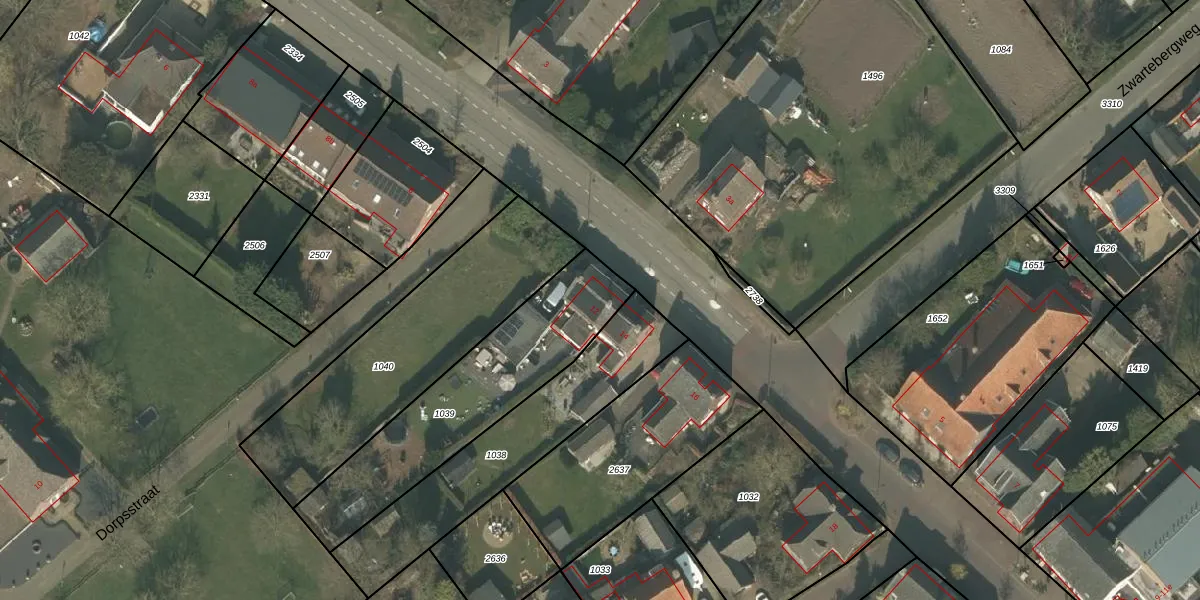 Dorpsstraat 12 is gelegen op kadastraal perceel BGN02T1039. Deze kadastrale aanduiding is uniek en wordt gebruikt door het Kadaster om eigendomsrechten en andere zakelijke rechten vast te leggen. Het perceel maakt onderdeel uit van de kadastrale gemeente Bergen Limburg.