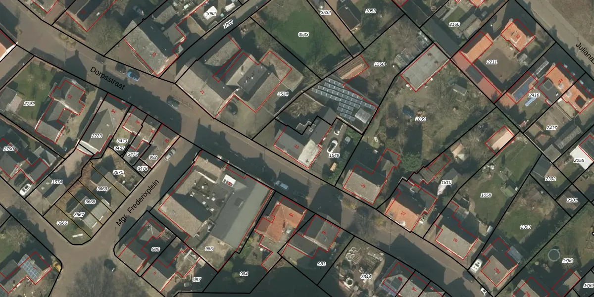 Dorpsstraat 23 is gelegen op kadastraal perceel BGN02T1549. Deze kadastrale aanduiding is uniek en wordt gebruikt door het Kadaster om eigendomsrechten en andere zakelijke rechten vast te leggen. Het perceel maakt onderdeel uit van de kadastrale gemeente Bergen Limburg.