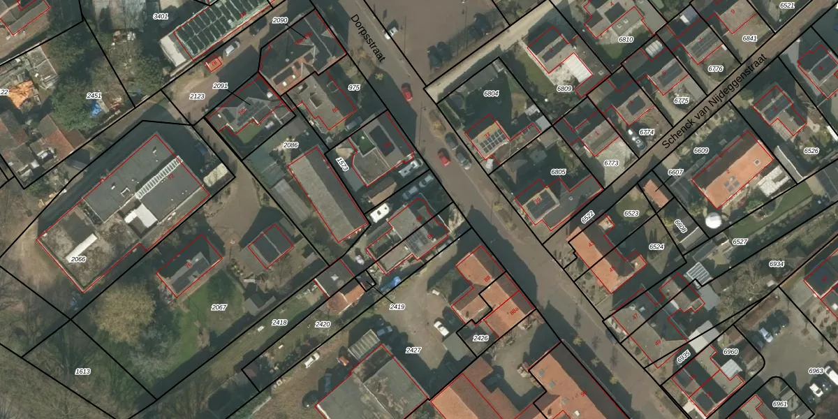 Gebruik de zoekbalk of klik op een perceel voor informatie over de adressen binnen dit perceel.
