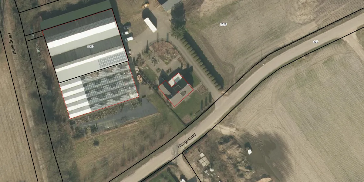 Het perceel waarop Hengeland 22 staat heeft een oppervlakte van 1,6 ha. Dit is een zeer groot perceel. De perceeloppervlakte wordt geregistreerd door het Kadaster. Gedetailleerde informatie over de maten van dit perceel kunt u vinden in het rapport Kadastrale kaart met maatvoering van Hengeland 22.