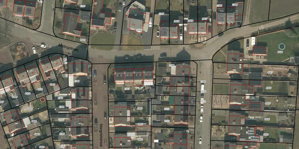 Melingstraat 18 is gelegen op kadastraal perceel BGN02C7167. Deze kadastrale aanduiding is uniek en wordt gebruikt door het Kadaster om eigendomsrechten en andere zakelijke rechten vast te leggen. Het perceel maakt onderdeel uit van de kadastrale gemeente Bergen Limburg.