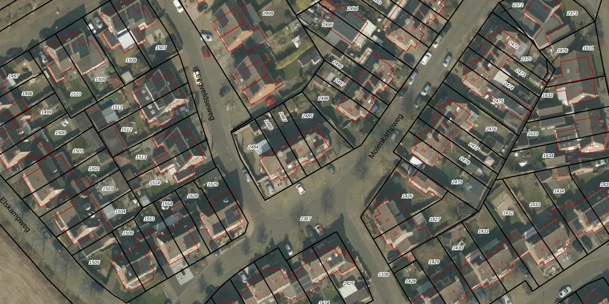 Molenkampweg 15 is gelegen op kadastraal perceel BGN02T2487. Deze kadastrale aanduiding is uniek en wordt gebruikt door het Kadaster om eigendomsrechten en andere zakelijke rechten vast te leggen. Het perceel maakt onderdeel uit van de kadastrale gemeente Bergen Limburg.