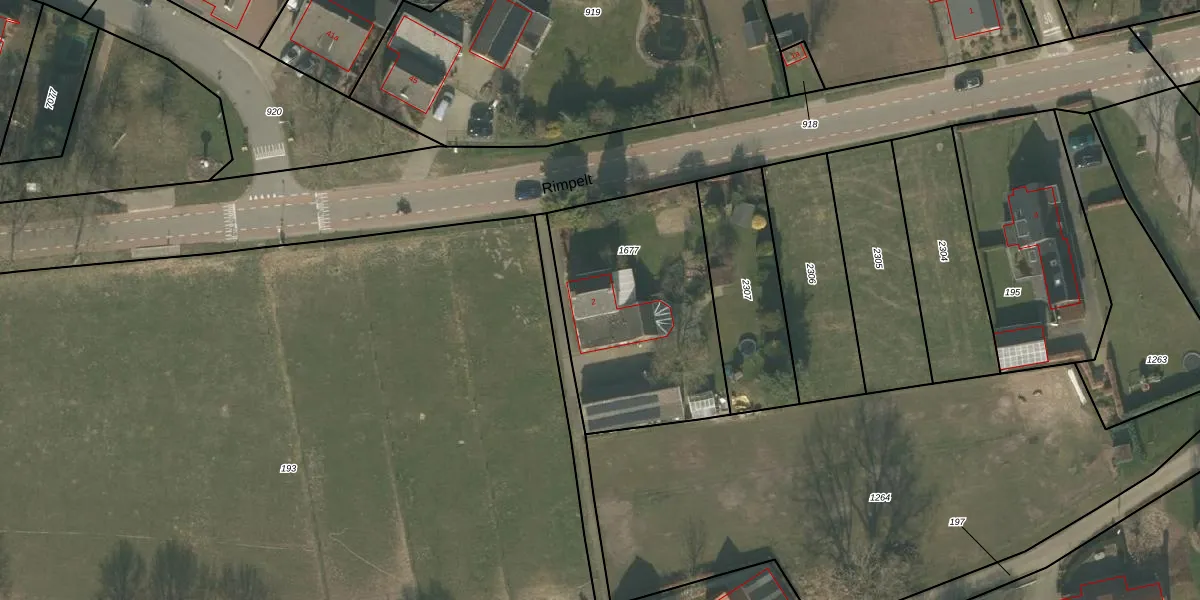 Het perceel waarop Rimpelt 2 staat heeft een oppervlakte van 965 m². Dit is een groot perceel. De perceeloppervlakte wordt geregistreerd door het Kadaster. Gedetailleerde informatie over de maten van dit perceel kunt u vinden in het rapport Kadastrale kaart met maatvoering van Rimpelt 2.