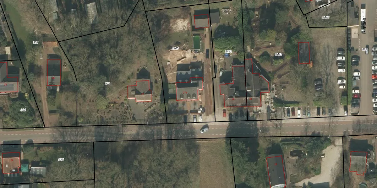 Het perceel waarop Rimpelt 27-a staat heeft een oppervlakte van 1801 m². Dit is een zeer groot perceel. De perceeloppervlakte wordt geregistreerd door het Kadaster. Gedetailleerde informatie over de maten van dit perceel kunt u vinden in het rapport Kadastrale kaart met maatvoering van Rimpelt 27-a.