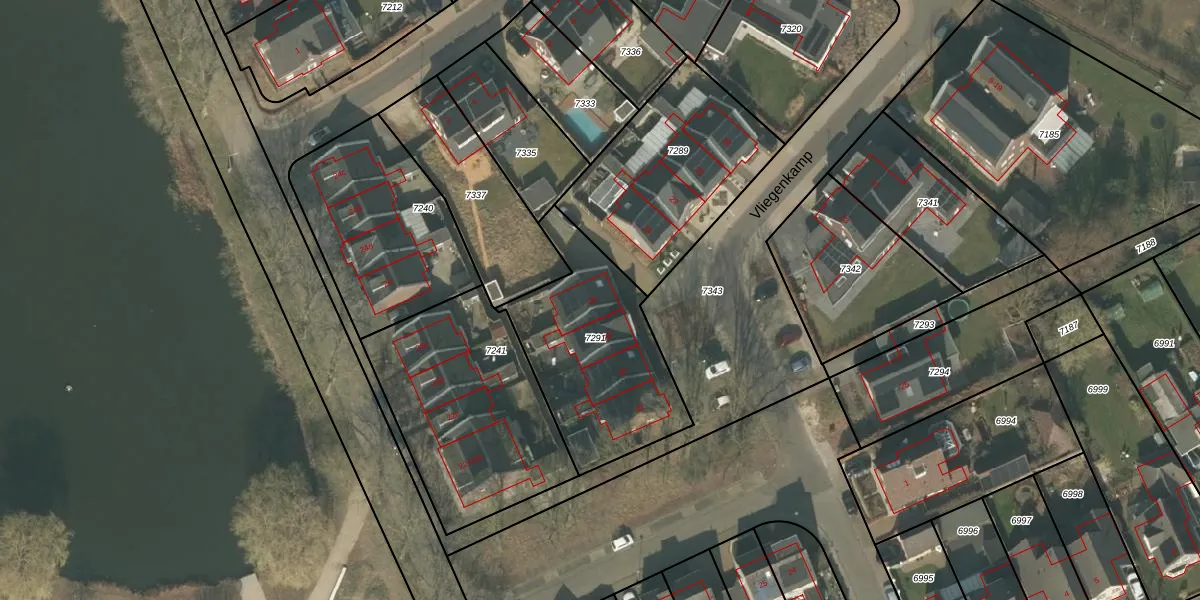 Het perceel waarop Vliegenkamp 26 staat heeft een oppervlakte van 710 m². Dit is een groot perceel. De perceeloppervlakte wordt geregistreerd door het Kadaster. Gedetailleerde informatie over de maten van dit perceel kunt u vinden in het rapport Kadastrale kaart met maatvoering van Vliegenkamp 26.