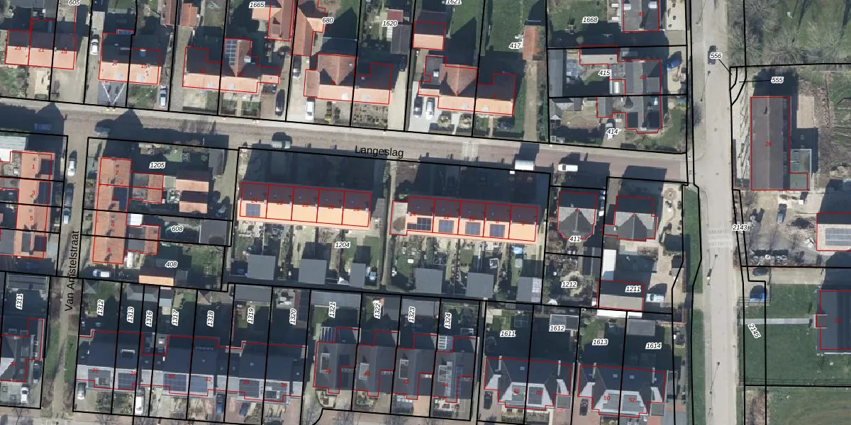 Langeslag 14 is gelegen op kadastraal perceel DTN03D1204. Deze kadastrale aanduiding is uniek en wordt gebruikt door het Kadaster om eigendomsrechten en andere zakelijke rechten vast te leggen. Het perceel maakt onderdeel uit van de kadastrale gemeente Druten.