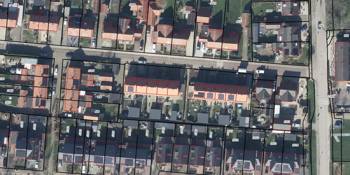 Langeslag 16 is gelegen op kadastraal perceel DTN03D1204. Deze kadastrale aanduiding is uniek en wordt gebruikt door het Kadaster om eigendomsrechten en andere zakelijke rechten vast te leggen. Het perceel maakt onderdeel uit van de kadastrale gemeente Druten.