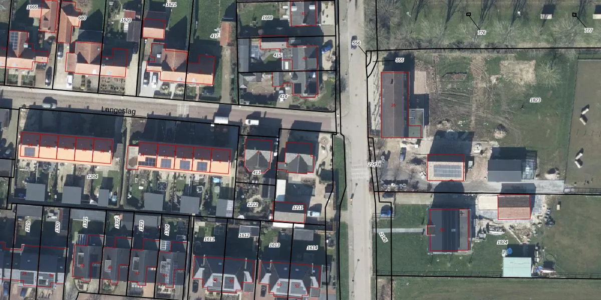 Het perceel waarop Langeslag 2 staat heeft een oppervlakte van 563 m². Dit is een groot perceel. De perceeloppervlakte wordt geregistreerd door het Kadaster. Gedetailleerde informatie over de maten van dit perceel kunt u vinden in het rapport Kadastrale kaart met maatvoering van Langeslag 2.
