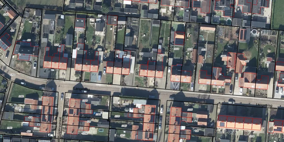 Langeslag 23 is gelegen op kadastraal perceel DTN03D604. Deze kadastrale aanduiding is uniek en wordt gebruikt door het Kadaster om eigendomsrechten en andere zakelijke rechten vast te leggen. Het perceel maakt onderdeel uit van de kadastrale gemeente Druten.