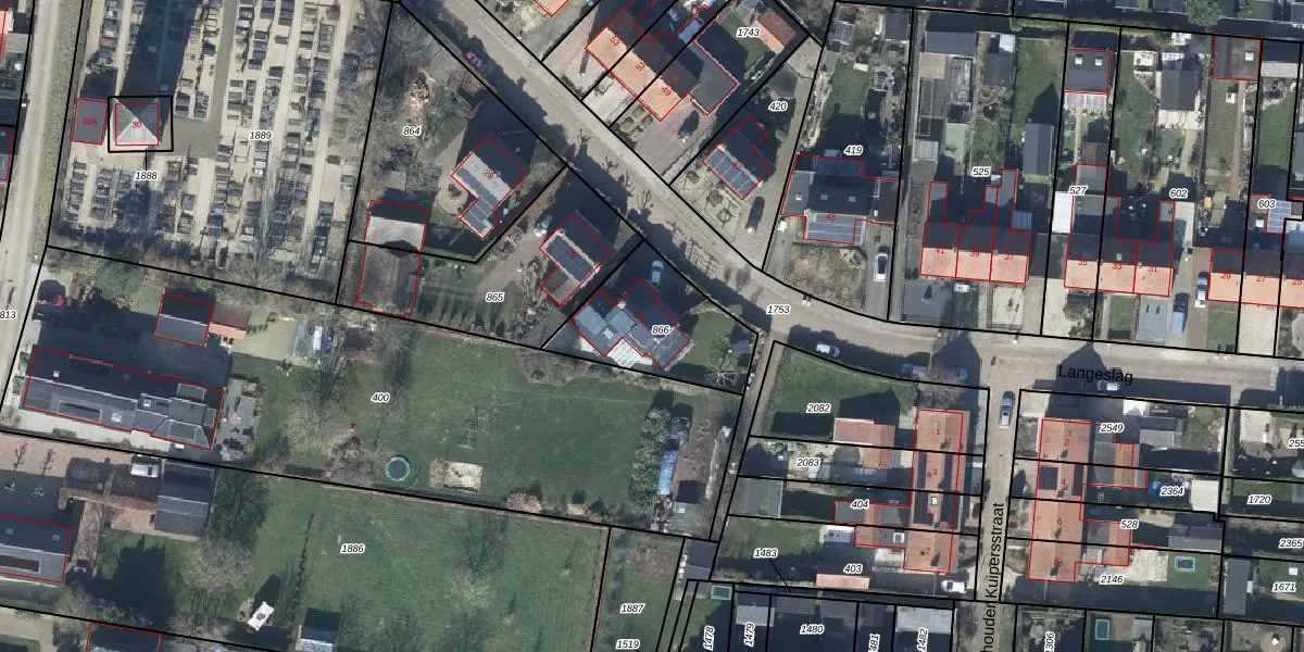 Het perceel waarop Langeslag 24-A staat heeft een oppervlakte van 420 m². Dit is een groot perceel. De perceeloppervlakte wordt geregistreerd door het Kadaster. Gedetailleerde informatie over de maten van dit perceel kunt u vinden in het rapport Kadastrale kaart met maatvoering van Langeslag 24-A.
