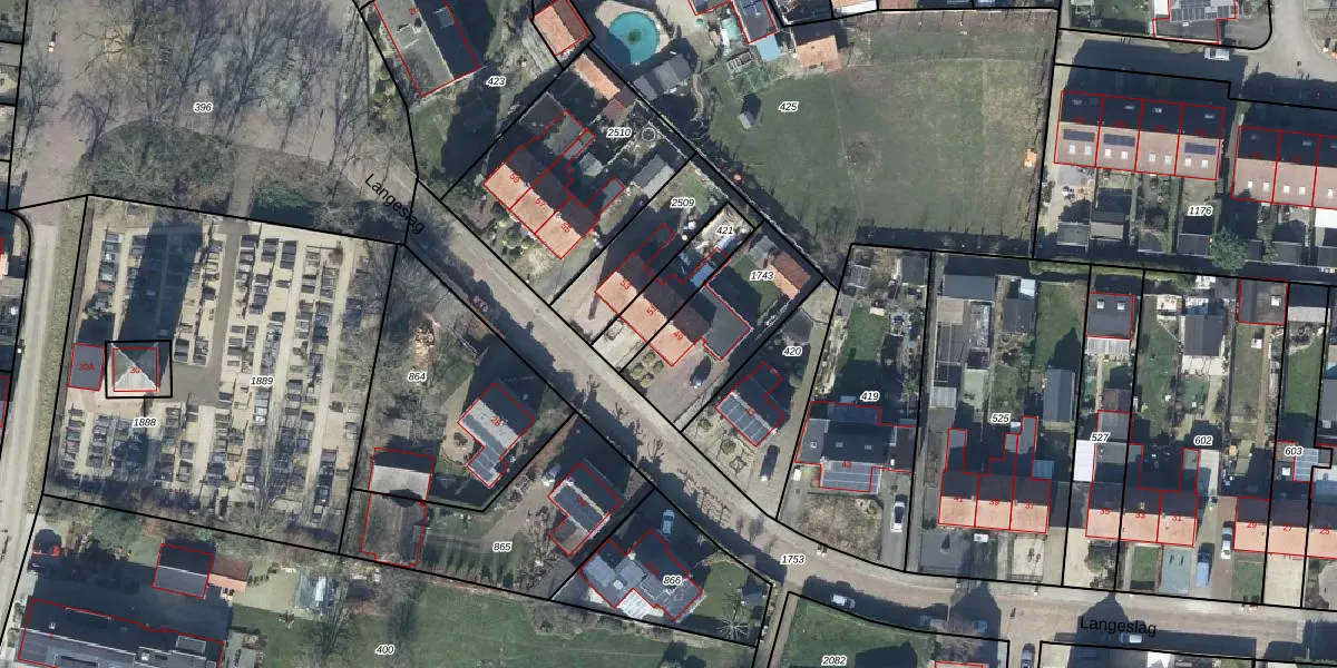 Langeslag 49 is gelegen op kadastraal perceel DTN03D1743. Deze kadastrale aanduiding is uniek en wordt gebruikt door het Kadaster om eigendomsrechten en andere zakelijke rechten vast te leggen. Het perceel maakt onderdeel uit van de kadastrale gemeente Druten.