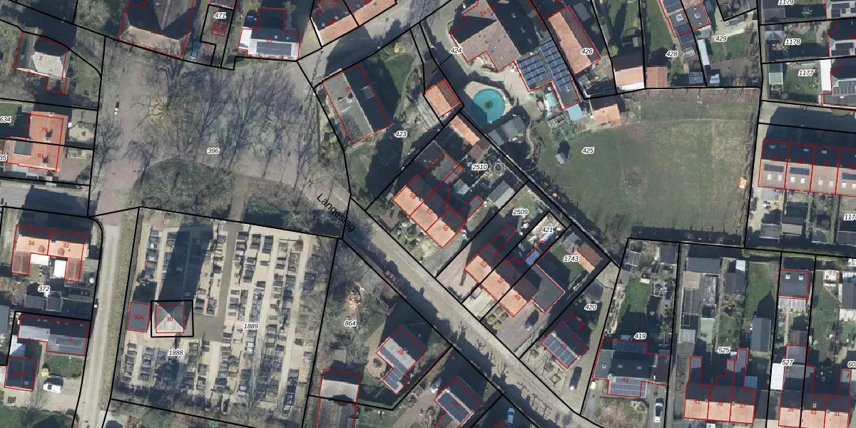 Langeslag 57 is gelegen op kadastraal perceel DTN03D2510. Deze kadastrale aanduiding is uniek en wordt gebruikt door het Kadaster om eigendomsrechten en andere zakelijke rechten vast te leggen. Het perceel maakt onderdeel uit van de kadastrale gemeente Druten.