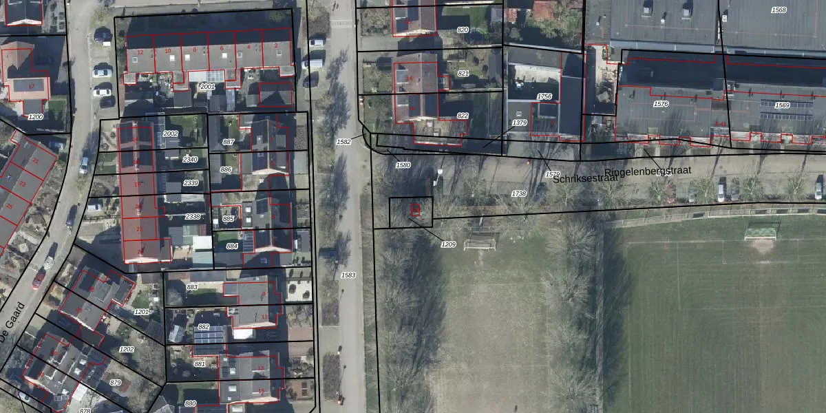 Gebruik de zoekbalk of klik op een perceel voor informatie over de adressen binnen dit perceel.