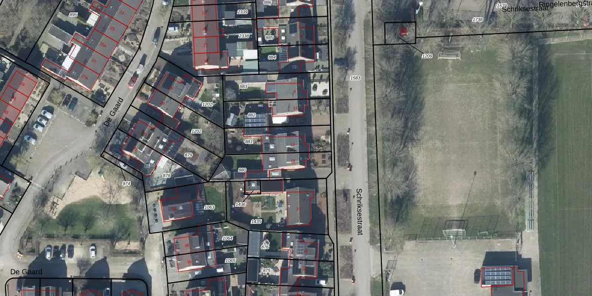 Het perceel waarop Schriksestraat 13 staat heeft een oppervlakte van 323 m². Dit is een groot perceel. De perceeloppervlakte wordt geregistreerd door het Kadaster. Gedetailleerde informatie over de maten van dit perceel kunt u vinden in het rapport Kadastrale kaart met maatvoering van Schriksestraat 13.