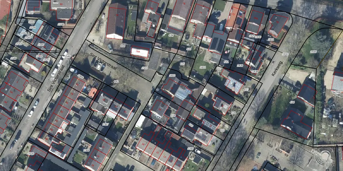 Het perceel waarop Sint Victorstraat 16 staat heeft een oppervlakte van 397 m². Dit is een groot perceel. De perceeloppervlakte wordt geregistreerd door het Kadaster. Gedetailleerde informatie over de maten van dit perceel kunt u vinden in het rapport Kadastrale kaart met maatvoering van Sint Victorstraat 16.