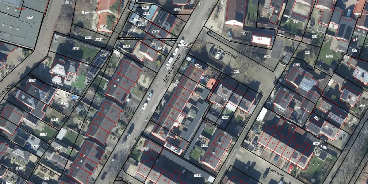 Het perceel waarop Sint Victorstraat 30 staat heeft een oppervlakte van 730 m². Dit is een groot perceel. De perceeloppervlakte wordt geregistreerd door het Kadaster. Gedetailleerde informatie over de maten van dit perceel kunt u vinden in het rapport Kadastrale kaart met maatvoering van Sint Victorstraat 30.